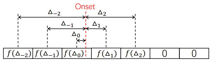 Instead of casting onsets/offsets as binary targets per frame, the authors define regression targets that encode the time distance from the center of a frame to the true onset/offset time. Practically:
