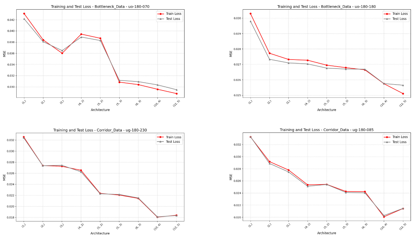 \[ \text{MSE} = \frac{1}{N} \sum_{n=1}^N (v_n - \hat{v}_n)^2, \tag{5} \]optimized with Adam at a learning rate of \(5 \times 10^{-4}\), and early stopping based on validation loss. Input and output features were normalized to zero mean and unit variance before training to stabilize gradients.
